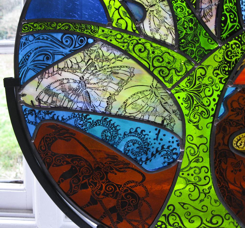 The traditional techniques of leading, copper foiling and painting feature in a lot of my work; however as the relatively new technique of glass fusion has gained increased popularity, so it has begun to significantly influence more of my designs.