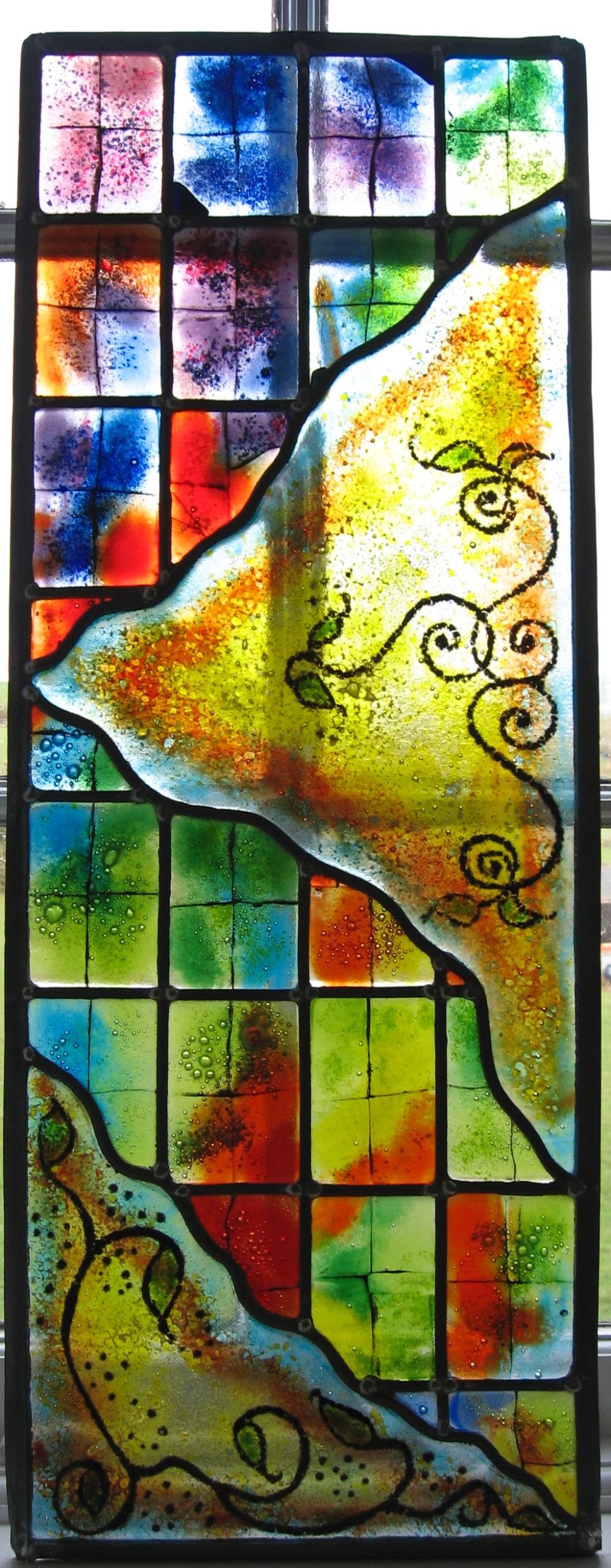 This gallery features panels from my latest series of designs, and combines the traditional craft of leading along with the more contemporary technique of glass fusion.Both are worked together to create a truly unique piece that can be fitted as a window or hung within it's frame to adorn any wall or window.