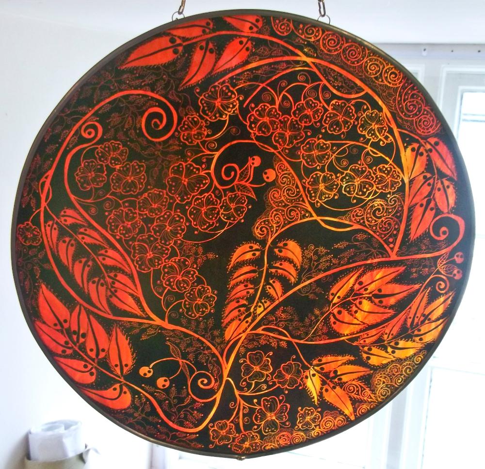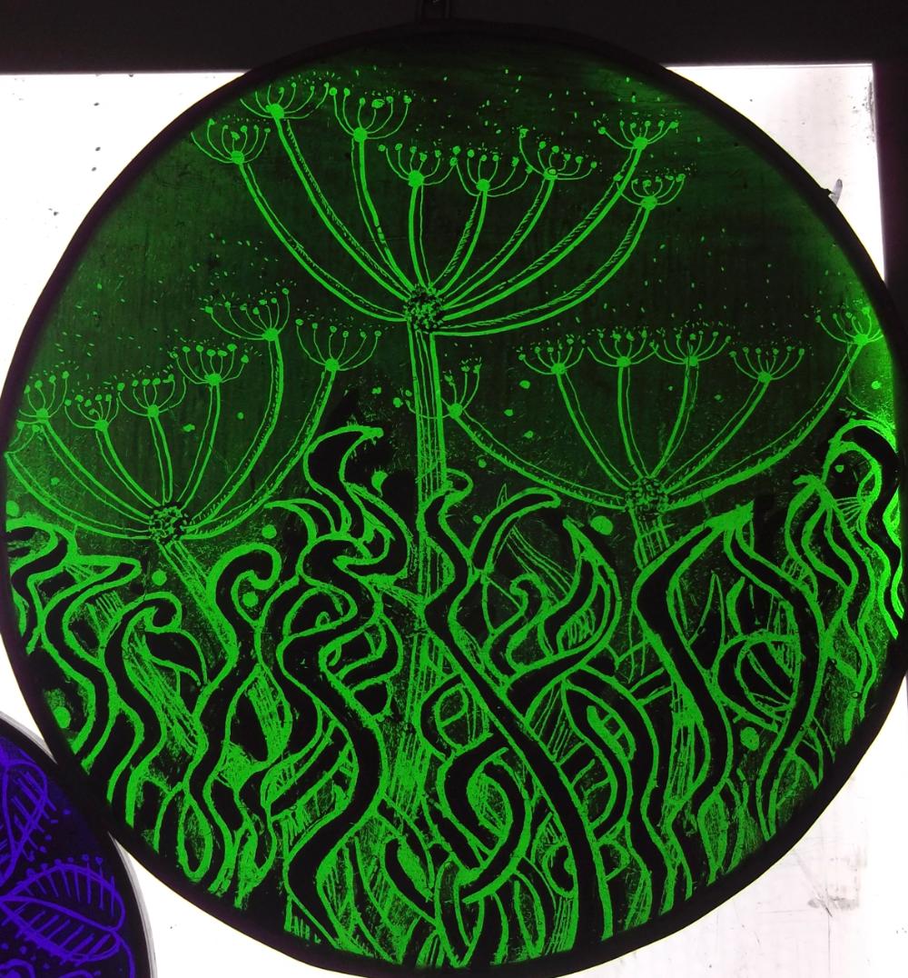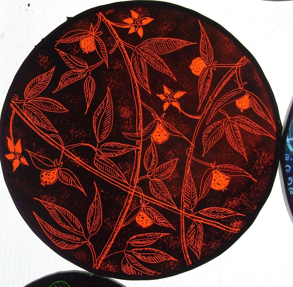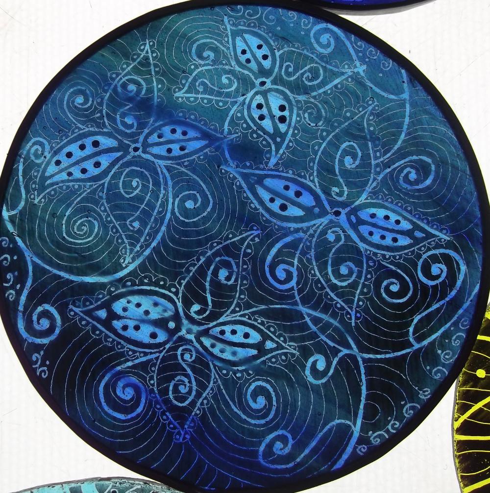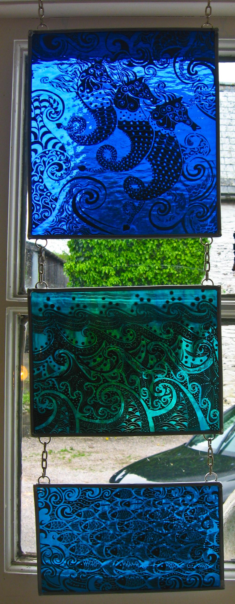 Examples of kiln fired enamels,hand painted using my own designs onto cold glass, and then fired
