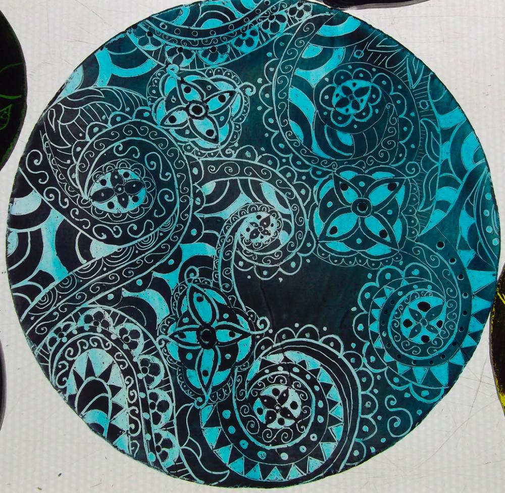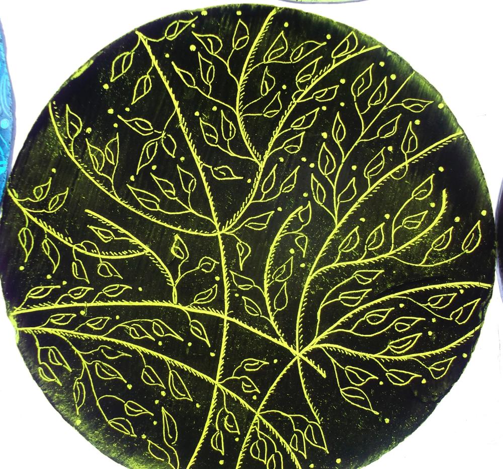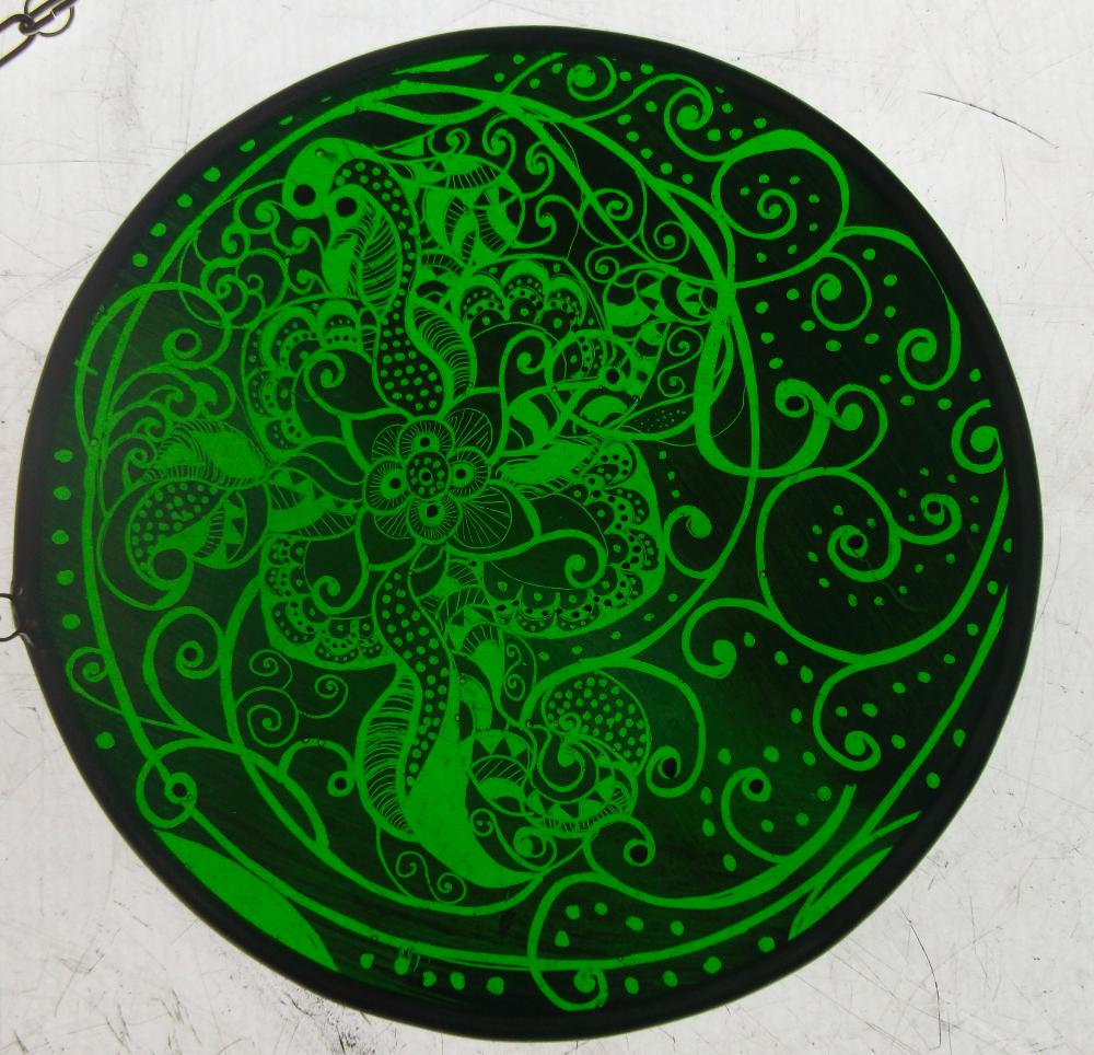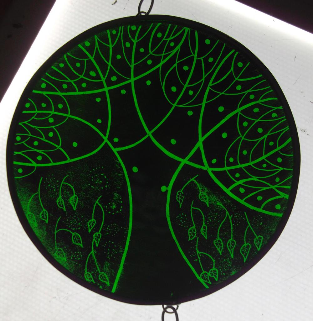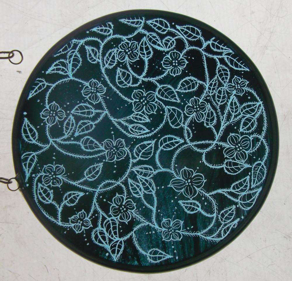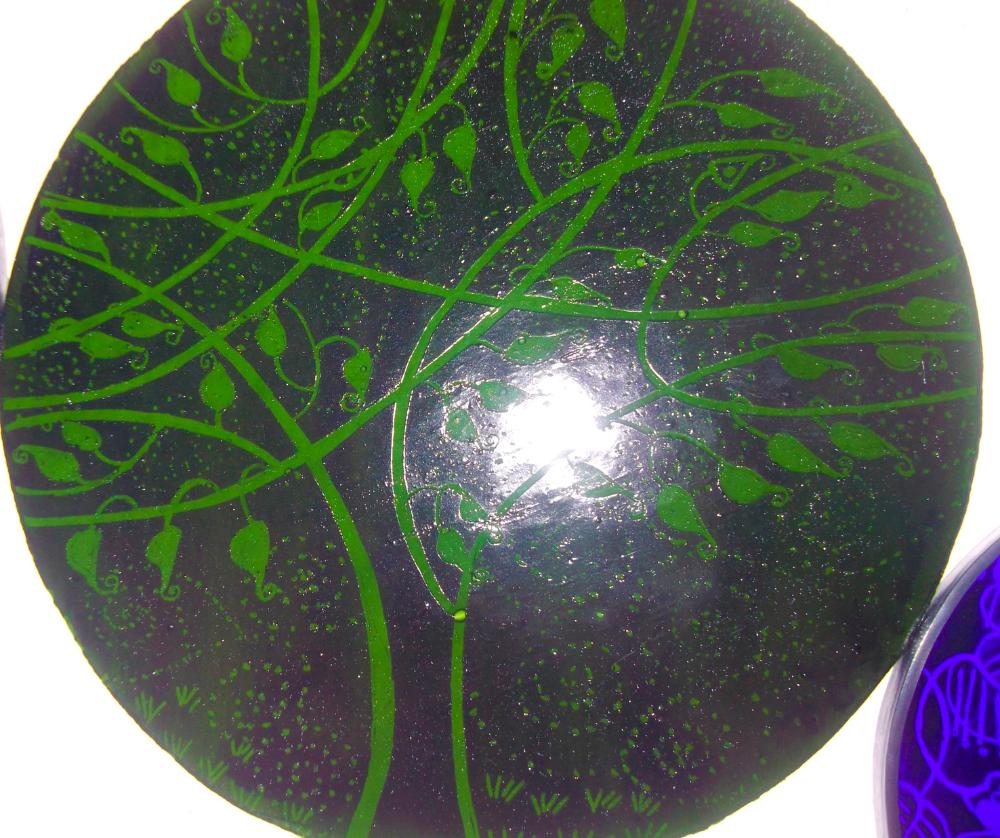 Examples of kiln fired enamels,hand painted using my own designs onto cold glass, and then fired