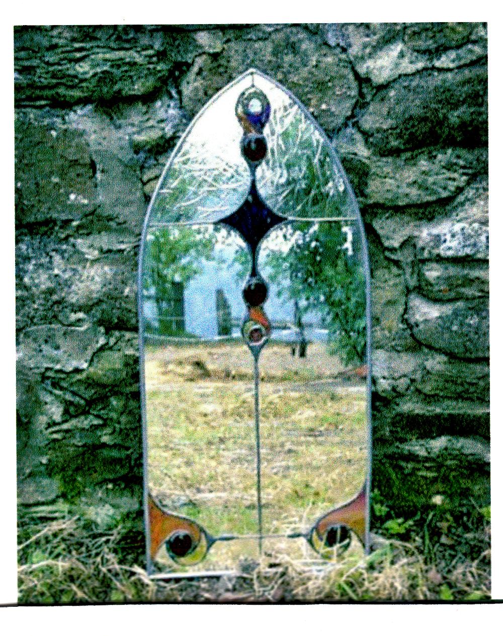 The mirror belongs to Man as one of the most important attributes of his surroundings. It is used as a means of self control, of connecting to the reality of who we are within our environment, both interior and exterior. It gives us proof of our own acceptance , but also documents the changes that we experience as our life’s journey unfolds. selects excerpts from a variety of pictures , either through it’s outline or with the frame cut into them. Depending upon it’s position, it can tilt them, place them at an angle, even distort them.